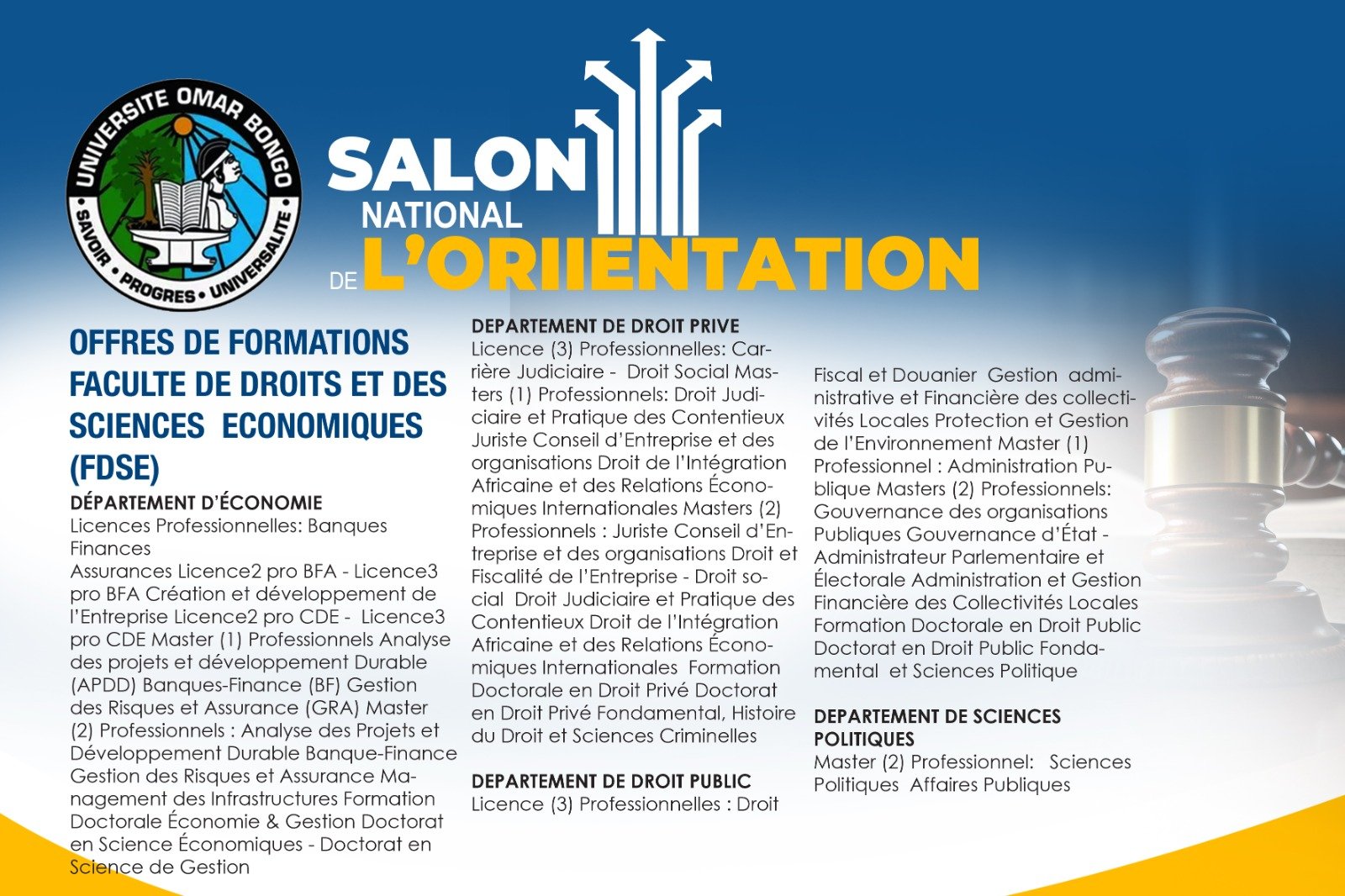 Le Salon National de l’Orientation de l’Université Omar Bongo présente les différentes offres de formation disponibles dans plusieurs facultés.